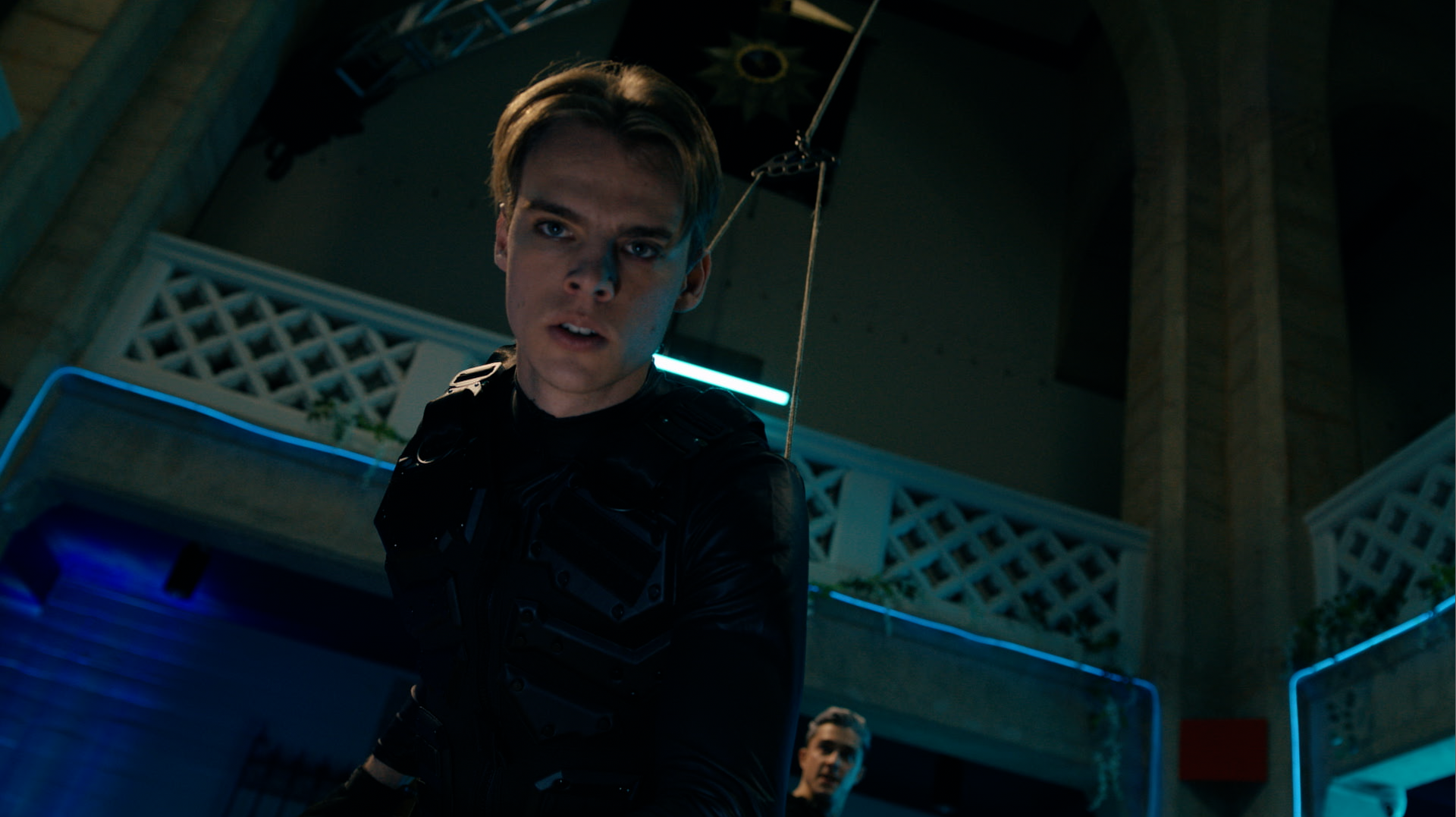 Significant cleanup was needed in scenes of rope rigging and stage lights. To do this clean plates needed to be fabricated as well as heavy roto-work and clean up paint to create this effect. The excessive bleed of rim light from the stage light behind the actor presented an especially fun challenge in this clean up.